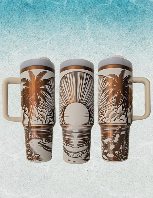 40 oz Sunset & Palm Trees Beach Vibes Tumbler