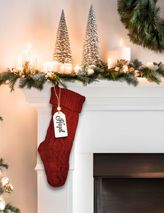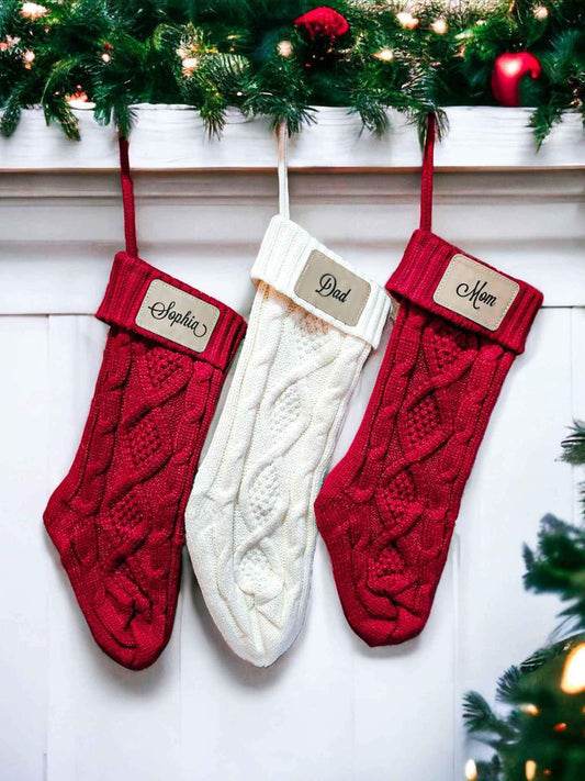 Christmas Stocking with Personalized Leatherette Name Patch