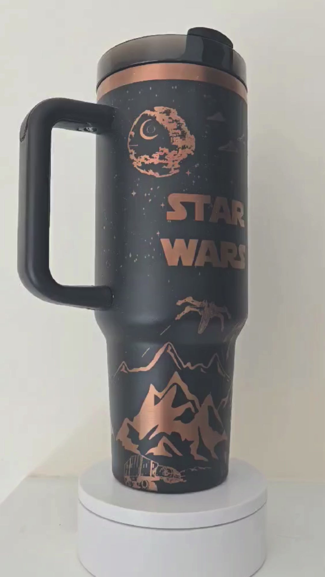Fuel your day like a true Jedi (or Sith) with this 40oz stainless steel tumbler, featuring a laser-engraved Star Wars-inspired design. Whether you're exploring the galaxy or just tackling your daily adventures, this tumbler keeps your drinks at the perfect temperature. The high-quality engraving ensures a sleek, long-lasting finish that won’t fade or peel.