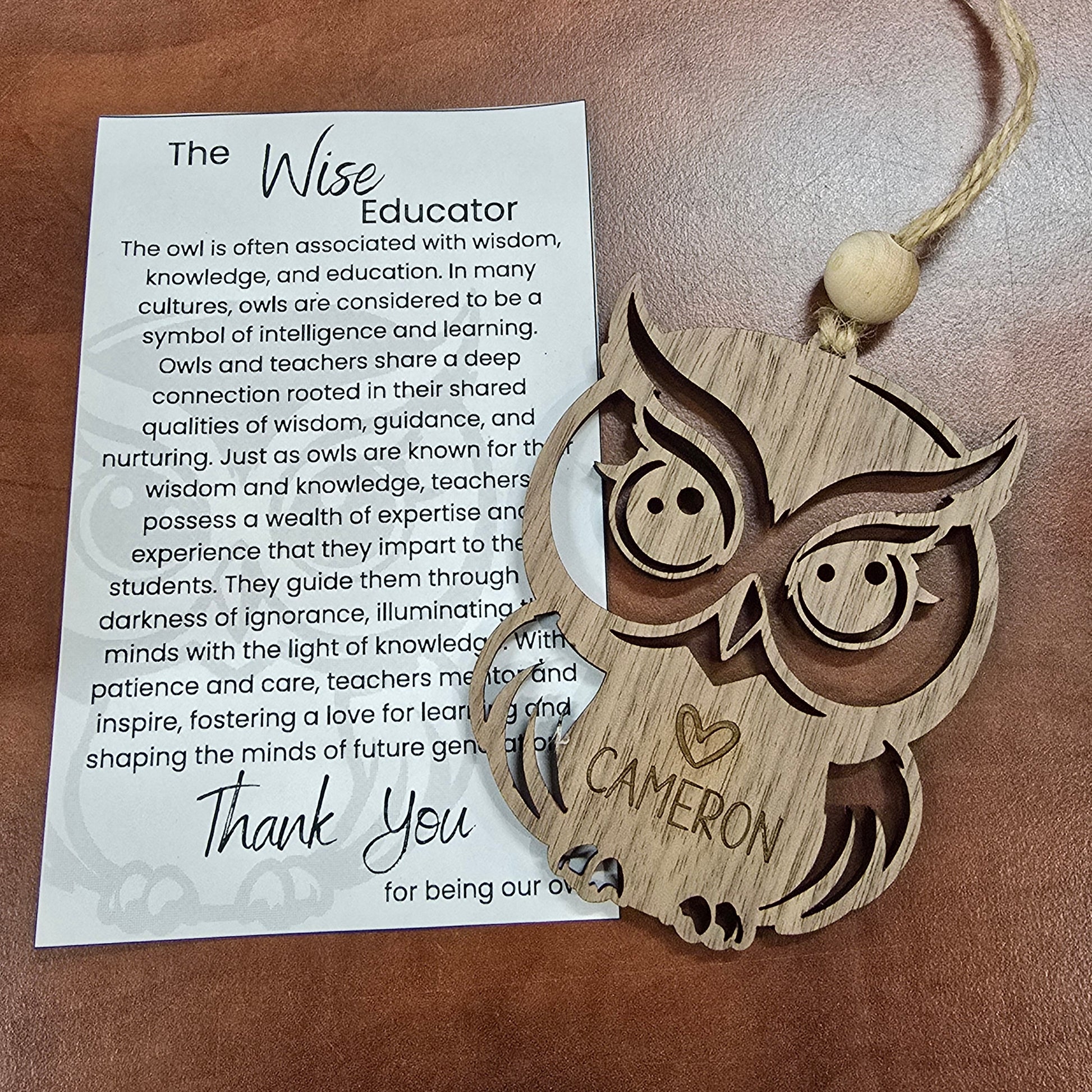 Personalized Laser Cut Owl Ornament – The Perfect Gift for Teachers
